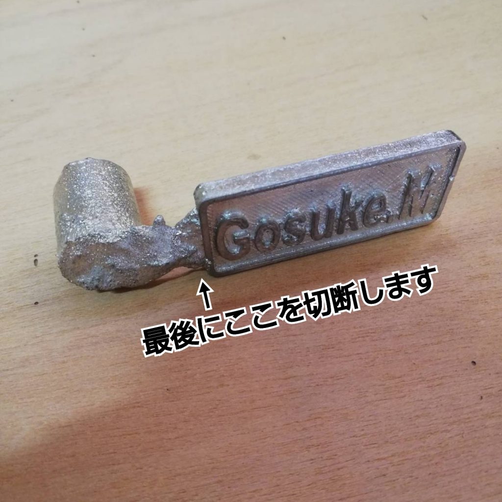 | 使用したもの ・鋳物砂8号 ・低融点合金(ピューター) ・木枠 ・定盤 ・模型(3Dプリンター製) ・別れ砂(今回は紙) |
