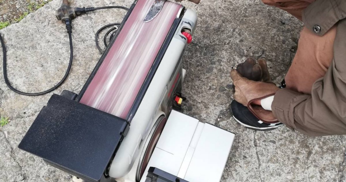 鍛造でナイフを製作しています。 前回に引き続き熱した鉄をひたすら叩き、ある程度ナイフの形になった所で研磨作業に入りました。 これからさらに研磨作業をやっていく予定です。