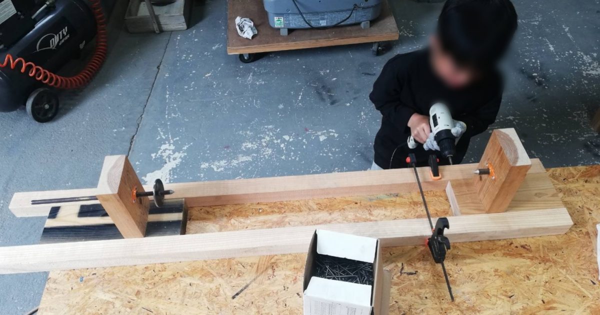 バットを作りたい!ということで、まずバットを作るための装置を製作することから始めます。 ものづくりの世界では、「もの」を作るための「もの」を作ることがよくあります。 どんなバットが完成するでしょうか。