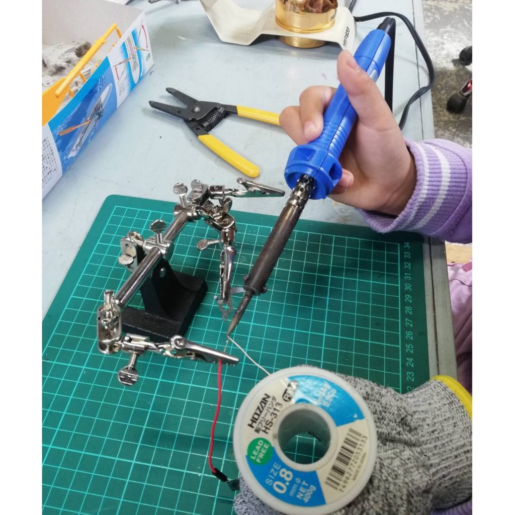 モーターと電池だけでどのように配線したらモーターが回るかを実験して、